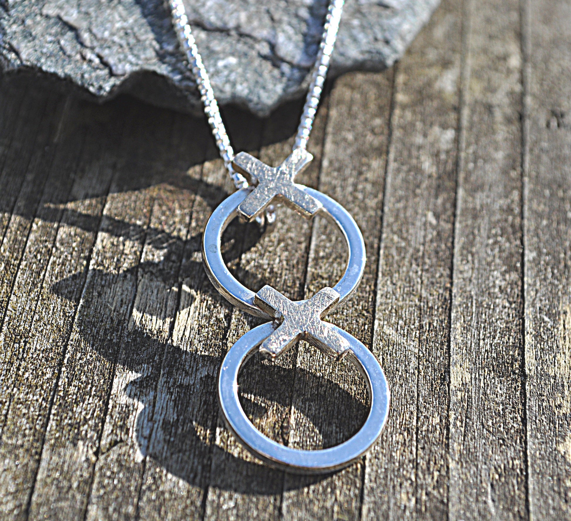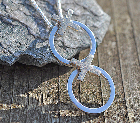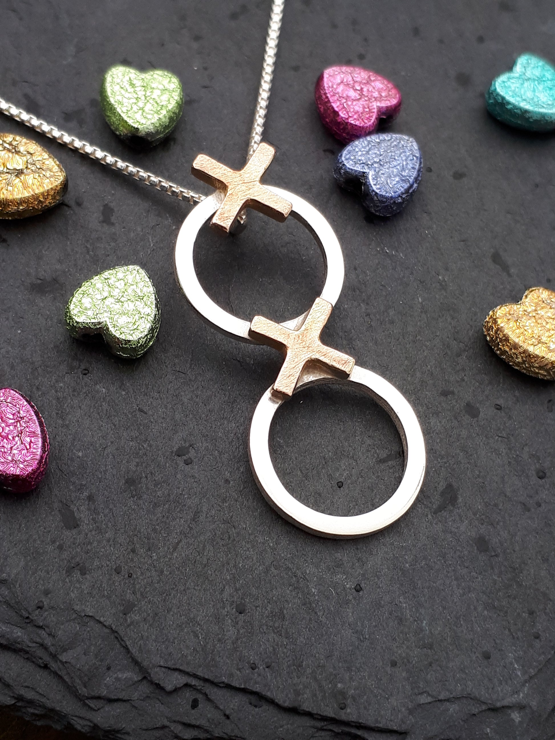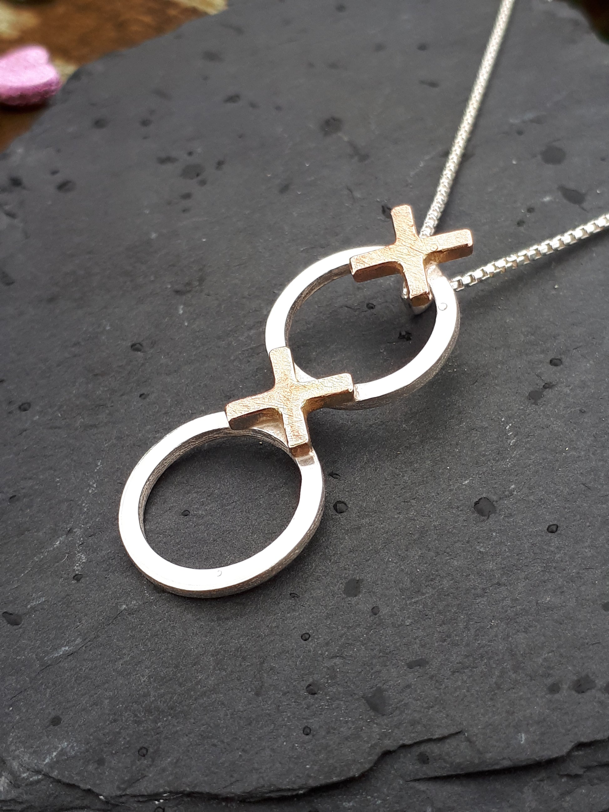 Hugs and Kisses Double Silver and 9ct Gold Pendant