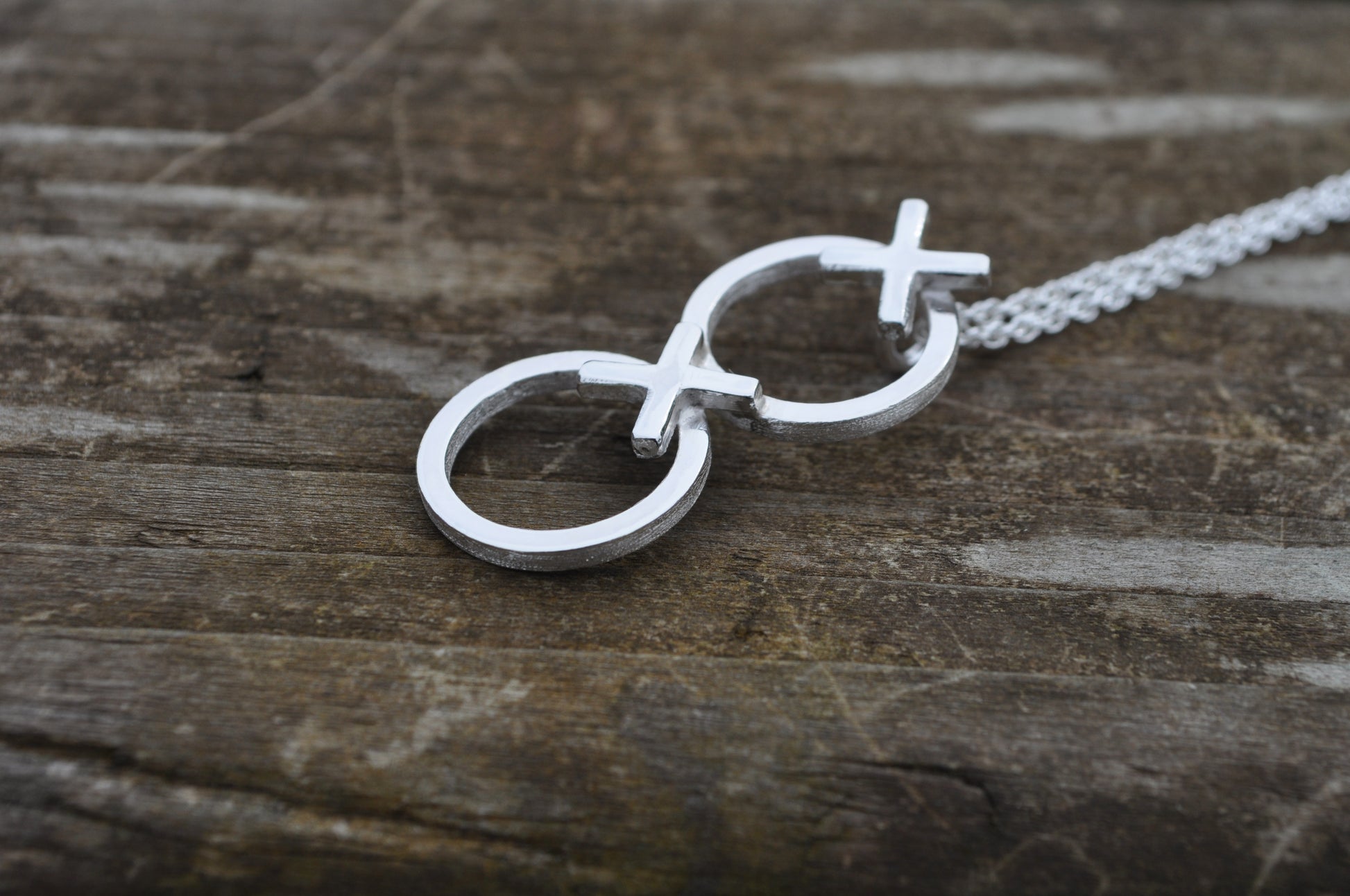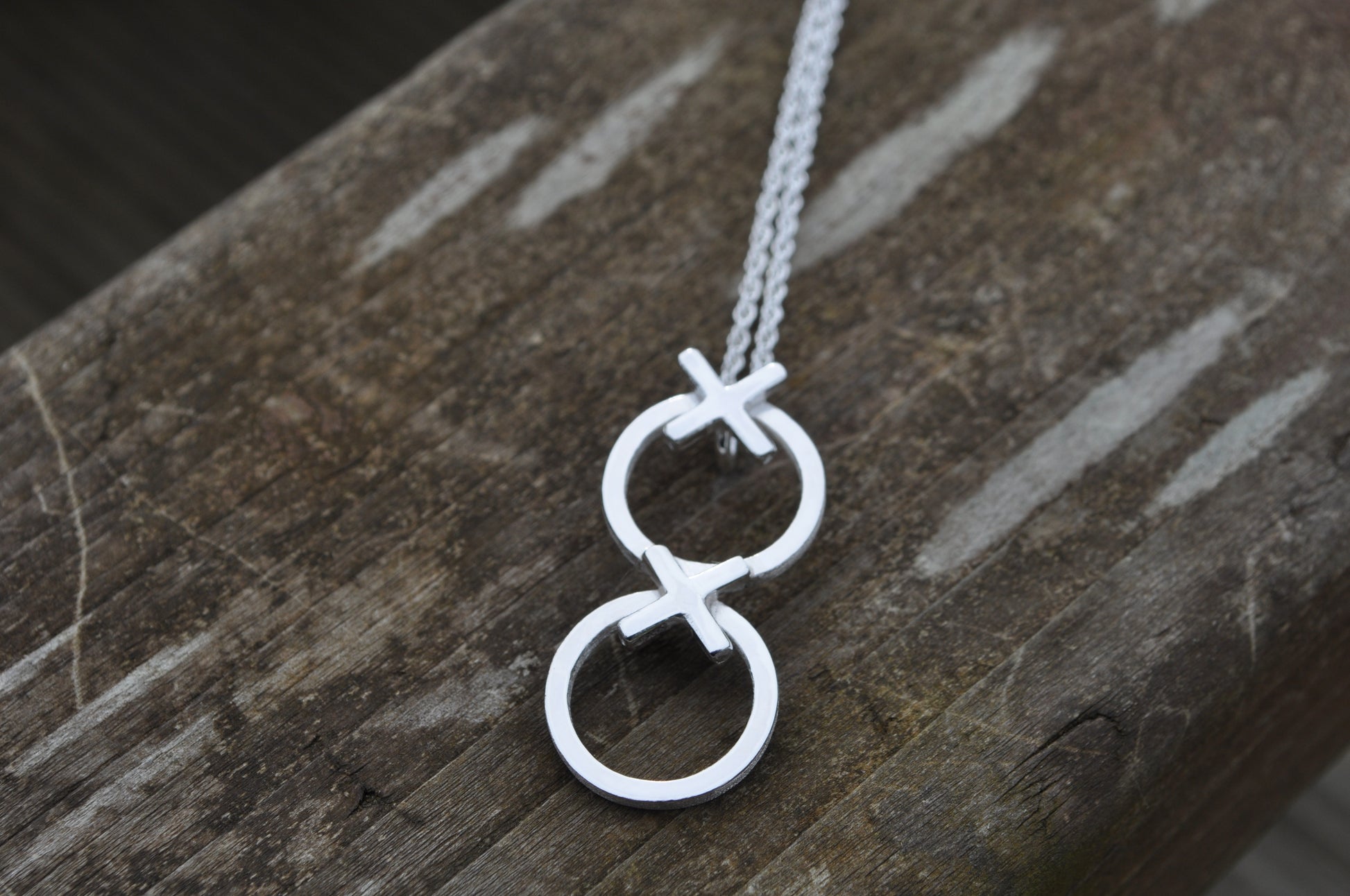 The pendant measures 3.6 cm from the top of the kiss to the bottom of the second hug and is 1.5 cm wide.