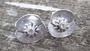 The poppy has a textured finish with a choice of clear CZ or real Garnet gemstones encircled by granules of silver.