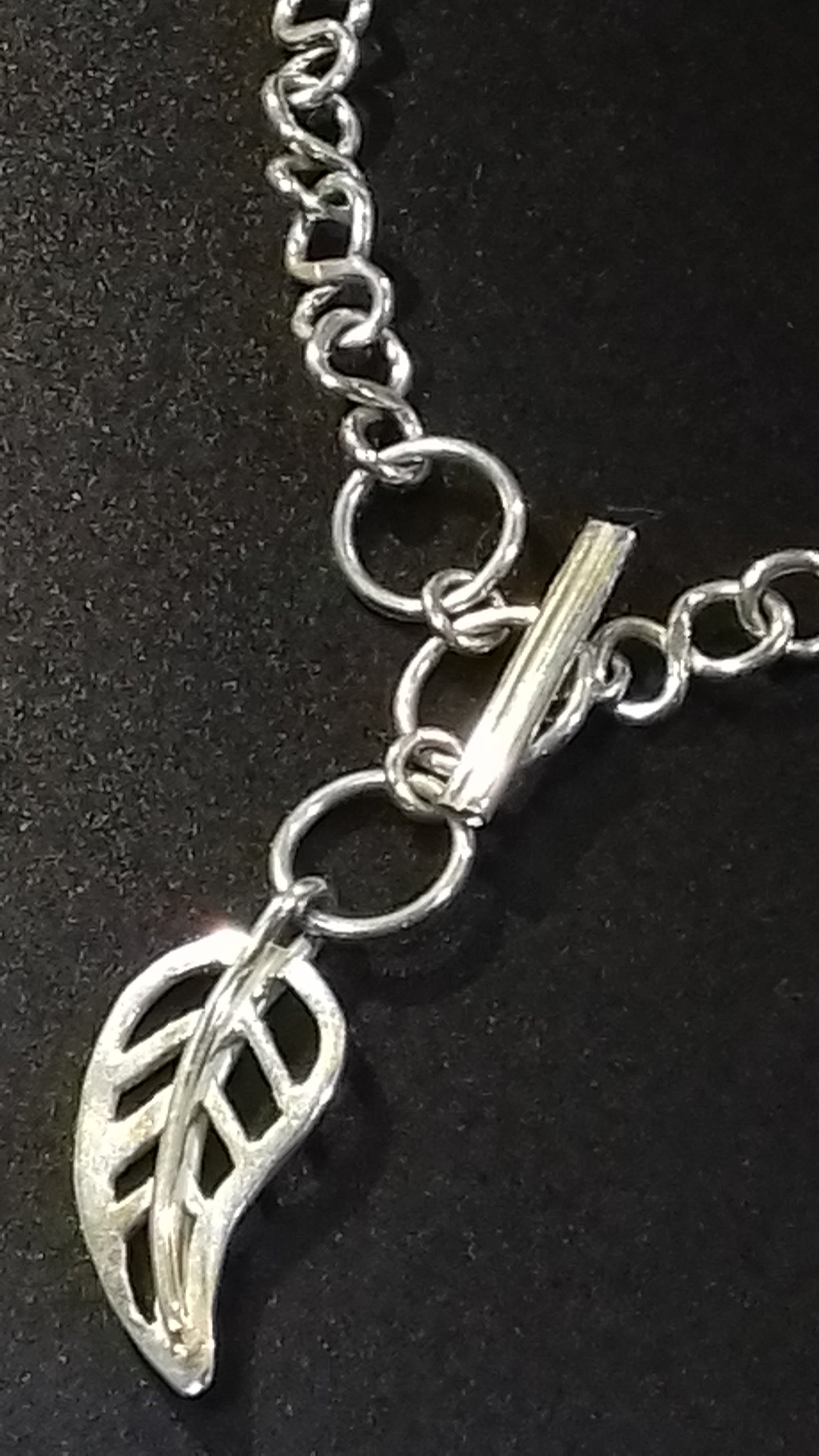 It is adjustable in length from 16.5cm to 19.5 cm (6.5 to 7.5 inches) approx. The leaf measures a substantial 3.7 cm x 1.2 cm (1.12 x 0. 5 inches) approx.